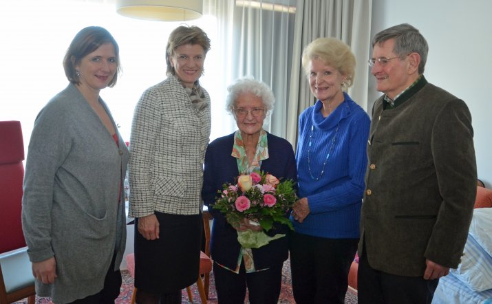Mit einem Gläschen Rotwein wurde im Wohnheim Lohbach auf den 102. Geburtstag von Paula Schachinger angestoßen. Neben ihrer Tochter Inge Schörghofer, ihrem Neffen Harald Gräber und Heimleiterin Mag.a (FH) Elisabeth Pasqualini war auch Bürgermeisterin Mag.a Christine Oppitz-Plörer gekommen, um der rüstigen Jubilarin zu ihrem Ehrentag zu gratulieren. „Es ist schön, Sie bei so guter Gesundheit zu sehen“, freute sich Innsbrucks Stadtoberhaupt über die agile und geistig fitte Seniorin.