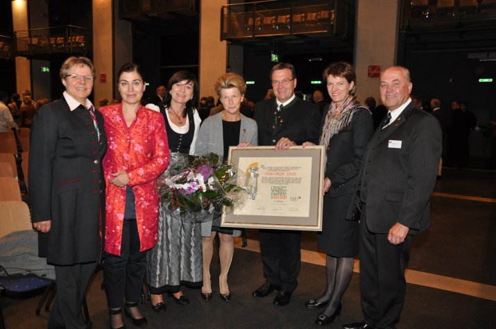 (RMS) Mit dem Ehrenzeichen „Oswald von Wolkenstein in Gold“ des Tiroler Sängerbundes wurde am 3. Oktober Innsbrucks Altbürgermeisterin Hilde Zach geehrt. Die Urkunde wurde durch Sängerbund-Obmann Manfred Duringer an Hilde Zach „für besondere Verdienste für das Chorwesen der Stadt Innsbruck“ anlässlich der 150-Jahr-Feier des Tiroler Sängerbundes in Anwesenheit von LH Günther Platter (Präsident des Tiroler Sängerbundes), Bürgermeisterin Mag.a Christine Oppitz-Plörer und Kulturstadträtin Dr. Patrizia Moser in der Innsbrucker Dogana überreicht.