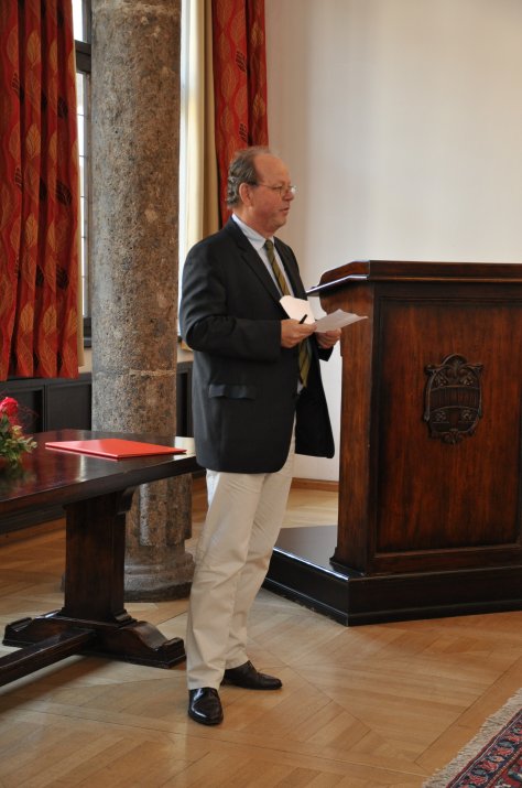 Der Jury, die aus dem Magistratsdirektor Dr. Bernhard Holas, dem Vizerektor der Leopold-Franzens-Universität Univ.-Prof. Dr. Tilmann Märk und dem Kulturamtsleiter Horst Burmann besteht, wurden in diesem Jahr acht Projekte vorgelegt. „Alle diese Anträge waren exzellent, die Entscheidung fiel uns nicht leicht. Dennoch war das Ergebnis einstimmig“, beteuerte Rektor Märk. Über die endgültige Vergabe entschied, den Regeln entsprechend, Bürgermeisterin Oppitz-Plörer.