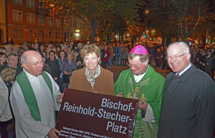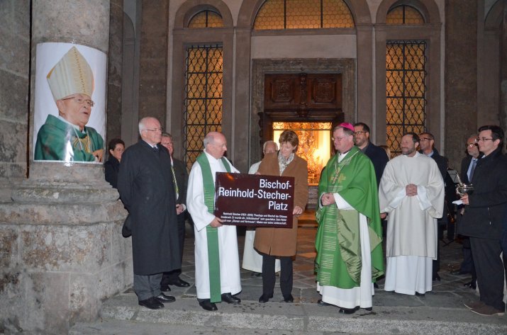 Der im Jänner verstorbene Altbischof Dr. Reinhold Stecher lebt in den Herzen und Gedanken zahlreicher InnsbruckerInnen weiter. Um Dr. Stecher ein dauerhaftes Andenken zu bewahren, erinnert nun ein Platz in der Innsbrucker Innenstadt an ihn: Der Platz vor der Neuen Universitätskirche am Innrain trägt seinen Namen.