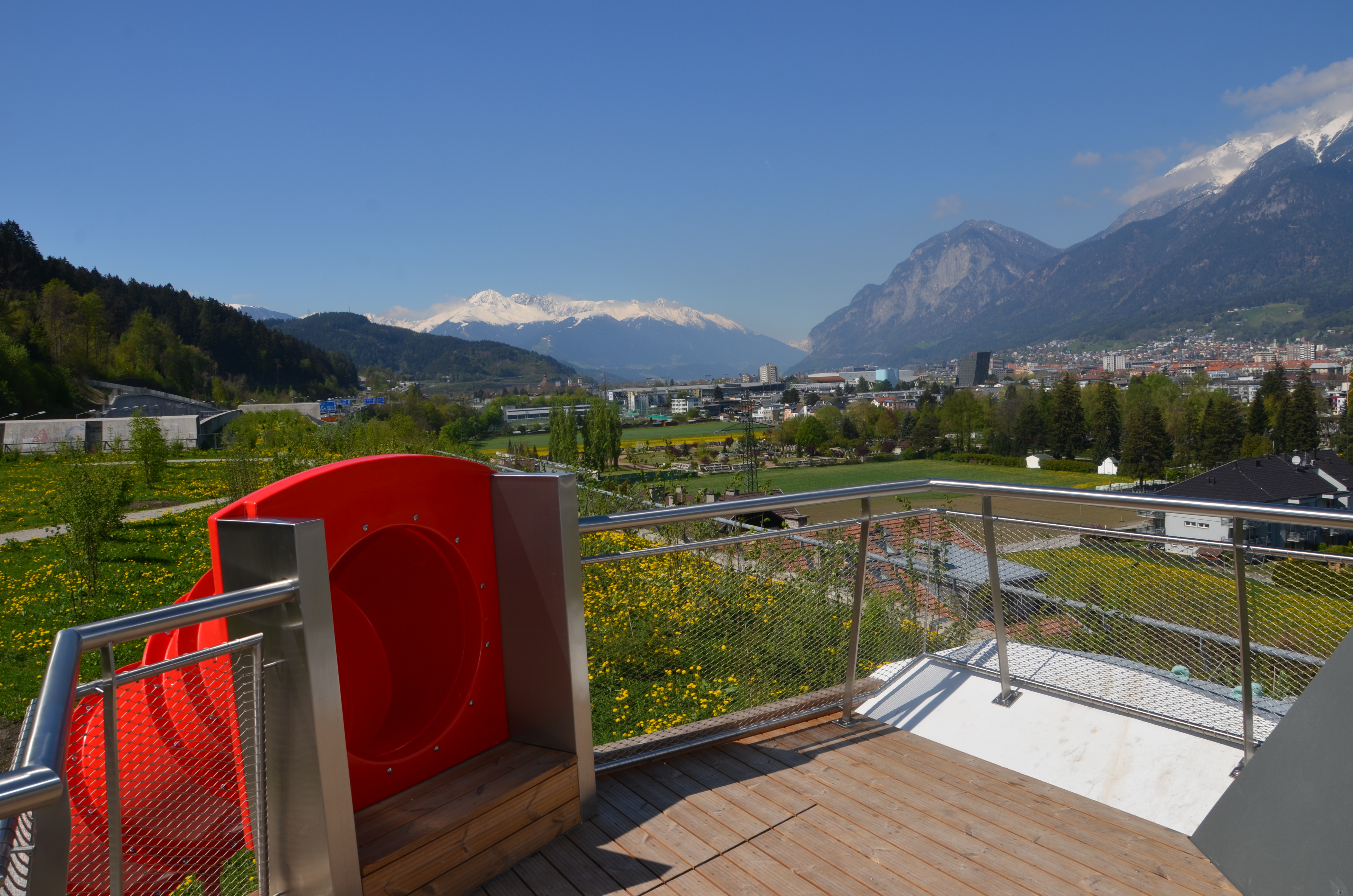 Die Einhausung der Autobahn A12 in Amras trägt nicht nur positiv zur Lärmbewältigung bei, sie entwickelt sich immer mehr zur grünen Oase für jede Altersklasse. Nach der Fertigstellung des Spielplatzes für Kleinkinder 2014, konnte nun auch die Boulderanlage eröffnet werden. Diese überzeugt durch eine ganz besondere Optik.