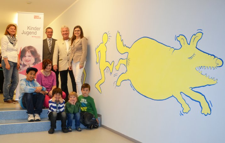 Um den Alltag im Kindergarten Lönsstraße noch abwechslungsreicher zu machen, wurde nun der Gang zum Turnsaal neu gestaltet. Lehrpersonen und SchülerInnen der dritten und vierten Klasse der Neuen Mittelschule Müllerstraße (Kreativschwerpunkt) haben im Rahmen der Bildnerischen Erziehung das Projekt umgesetzt und brachten verschiedene Figuren an den Wänden an. Vom positiven Abschluss des bunten Projekts überzeugten sich am 30. April Bildungsstadtrat Ernst Pechlaner und Amtsleiterin Mag.a Brigitte Berchtold gemeinsam mit den jungen KünstlerInnen. „Ich möchte mich herzlich bei Euch allen bedanken“, war Stadtrat Pechlaner vom gelungenen Ergebnis begeistert: „Eine solche Zusammenarbeit zwischen städtischen Institutionen ist wichtig und lobenswert. Sie stärkt den Teamgeist und den Gemeinschaftssinn.“