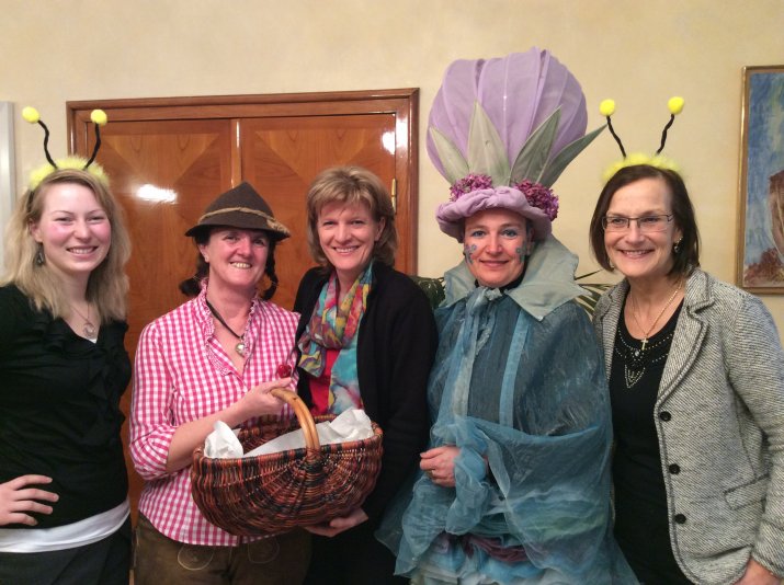 Auch im Rathaus wird der heutige Faschingsdienstag fröhlich gefeiert. Gesichtet wurden unter anderem Bürgermeisterin Mag.a Christine Oppitz-Plörer, die „fleißigen Bienchen“ aus ihrem Vorzimmer, Abteilungsleiterin Mag.a Birgit Neu als Blumenelfe und Vizebürgermeister Christoph Kaufmann als „schlafender Politiker“ mit Forstamtsleiter DI Andreas Wildauer.