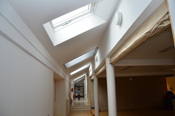 Das Gebäude bestand aus dem Jahr 1986/87 und befand sich demnach in einem entsprechend schlechten Zustand. Die Glasüberdachung entsprach nicht mehr dem Stand der Technik und brachte Probleme bezüglich Wärmebrücken und Undichtheiten. Aus diesem Grund wurde sie mittels Holzkonstruktion und Dachfenstern erneuert. Die Baukosten beliefen sich auf 280.000 Euro und wurde von der IIG übernommen.