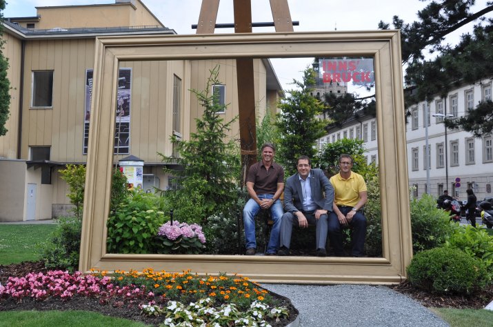 „Die Idee, einen Bilderrahmen als Fotomotiv zu bepflanzen wurde von der Stadtgartendirektion Innsbruck erstmals bei der Gartenschau „Maggio in Fiore“ 2008 in Cervia verwirklicht. Da diese Art ein Blumenbeet zu gestalten sehr gut aufgenommen wurde, entschlossen wir uns, den Rahmen auch in Innsbruck aufzustellen“, berichtet Stefan Engele vom Amt für Grünanlagen. Der Erfolg 2010 gab ihnen Recht. Tausende Touristen nahmen Fotos mit dem Innsbruck Logo und dem Bilderrahmen mit nach Hause. Auch heuer wurden bereits während der Aufbauarbeiten viele Fotos gemacht.