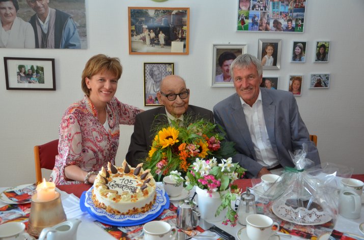 Vier Generationen waren bei der Geburtstagsfeier von Georg Cernusca in der Seniorenresidenz Veldidena zu Gast, als auch die Bürgermeisterin rechtzeitig zum Geburtstagsständchen die Glückwünsche der Stadt Innsbruck überbrachte. „Es ist schön, dass Sie in Ihrem stolzen Alter noch bei so guter Gesundheit sind“, so die Bürgermeisterin: „Ein beachtliches Alter, schließlich liegen zwischen Ihnen und der Urenkelin genau 100 Jahre.“
