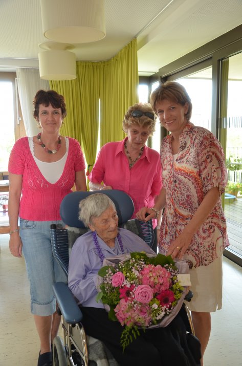 Mit einer kräftigen Stimme und guter Laune freute sich Hermine Mikschik über den Geburtstagsbesuch der Bürgermeisterin im Wohnheim Lohbach.