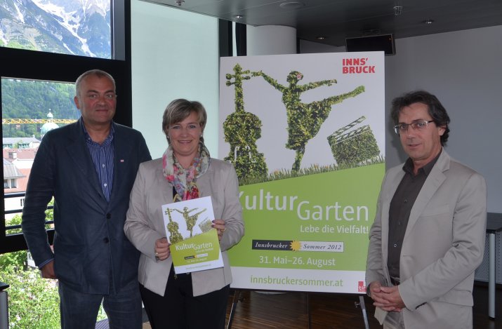 Unter dem Motto „KulturGarten – Lebe die Vielfalt!“ bietet der „Innsbrucker Sommer“ auch heuer wieder ein abwechslungsreiches Programm für Groß und Klein. Am 21. Mai präsentierten Dr. Thomas Juen (Leiter der Kulturabteilung des Landes Tirol), die Obfrau des Vereins „Innsbrucker Sommer“ Mag.a Birgit Neu und Dr. Karl Gostner (Obmann Innsbruck Tourismus) den bunten Veranstaltungsreigen.