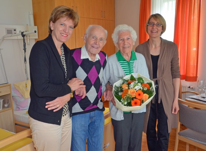 „Dass man ein solches Jubiläum wie das Ihrige gemeinsam erleben kann, ist sehr selten und nicht selbstverständlich. Ich wünsche Ihnen alles Gute“, zeigte sich Bürgermeisterin Oppitz-Plörer beeindruckt. Auf die Frage nach dem Geheimnis für ein langes, glückliches Leben gab die 91-jährige Rosa Lanbach den Rat, das Leben „so zu nehmen wie es ist und das Beste daraus zu machen“. Ihren Hochzeitstag feierte das Ehepaar bereits am 8. Mai im Kreise der Familie: Zwei Kinder, drei Enkel und sechs Urenkel hat das rüstige Ehepaar inzwischen.