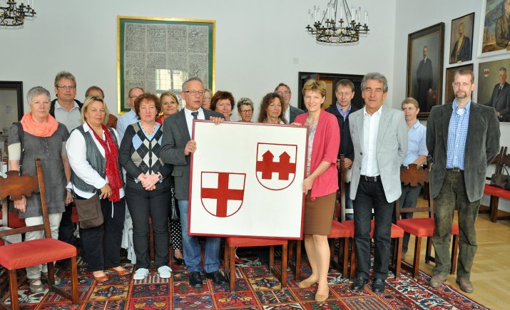 Dass die Partnerschaft zwischen den beiden Städten Innsbruck und Freiburg im Breisgau gelebt und gefördert wird, wurde am 29. Juni wieder einmal bewiesen: Anlässlich der 50-jährigen Städtepartnerschaft stattete die Raumausstatter-Sattler-Innung Südbaden Bürgermeisterin Mag.a Christine Oppitz-Plörer einen Besuch ab und überreichte ihr eine Velours-Arbeit, auf der die Wappen von Innsbruck und Freiburg abgebildet sind.