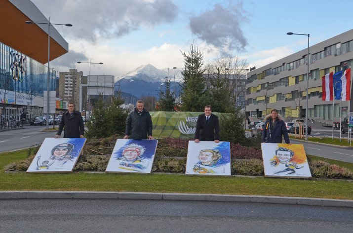 „Der Stadt Innsbruck liegt viel daran, dass die Grünflächen und Verkehrsinseln auch im Winter ansprechend gestaltet sind. Dazu werden immer wieder aktuelle Themen aufgegriffen, die die Stadt bewegen. Die Vierschanzentournee ist das größte alljährlich stattfindende Sportereignis und damit ein gutes Motiv“, sagte Grünraumreferent Vizebürgermeister Franz X. Gruber bei einer Besichtigung des Kreisverkehrs Olympiastraße mit dem Vorstand des Amts für Grünanlagen Ing. Thomas Klingler, dem Referenten für Grünanlagen – Planung und Bau Karl Gstrein und dem Mitarbeiter der Stadtgartendirektion Stefan Engele.
