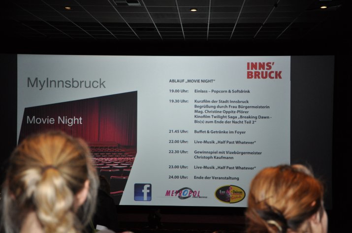 Auf dem Roten Teppich ins Erwachsenenleben – so fühlten sich rund 900 junge InnsbruckerInnen am 30. November bei der MyInnsbruck „Movie Night“ im Metropol Multiplex Kino. Zum kostenlosen Kinoabend mit dem Finale der angesagten Twilight Saga „Breaking Dawn – Bis(s) zum Ende der Nacht (2)“ hatte Bürgermeisterin Mag.a Christine Oppitz-Plörer im Namen der Stadt alle jungen BürgerInnen zwischen 16 und 18 Jahren eingeladen.