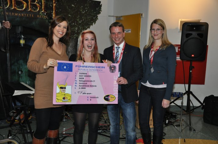 Im Rahmen der Kinonacht konnten die jungen BürgerInnen auch attraktive Preise gewinnen. Hauptgewinn waren ein Führerschein der Fahrschule Easy Drivers Harm Innsbruck und fünf Freizeittickets, zur Verfügung gestellt von der Innsbrucker Nordkettenbahnen Betriebs GmbH. Für coolen Sound bei der Party nach dem Film sorgte die heimische Nachwuchsband „Half Past Whatever“.