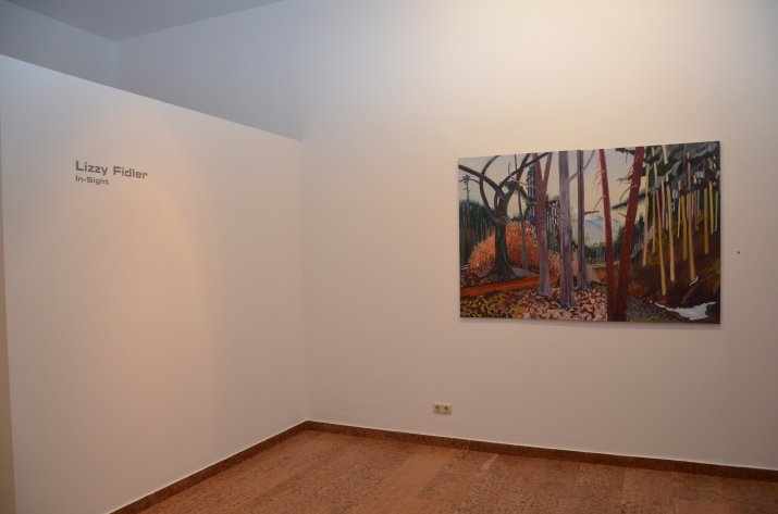In-Sight gibt einen Einblick in Waldstücke frei, ganz so, als befinde man sich im Wald-Innenraum. Diese Landschaften wurden von der Künstlerin direkt vor Ort im Höttinger Wald gefunden, man kann auch sagen erfunden, weil es der Blick selbst ist, der sich die Umgebung aufbaut, der die Raumansicht auswählt und diese Einsichten unter Wahrnehmung bestimmter Stimmungen (und Auslassung anderer) auf die Leinwand überträgt.