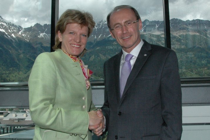 Innsbrucks Bürgermeisterin Mag.a Christine Oppitz-Plörer freute sich am Europatag über den Besuch des Vizepräsidenten des Europäischen Parlamentes, Othmar Karas, in Innsbruck. Im Zentrum des Gespräches standen die bevorstehenden Europawahlen am 25. Mai.