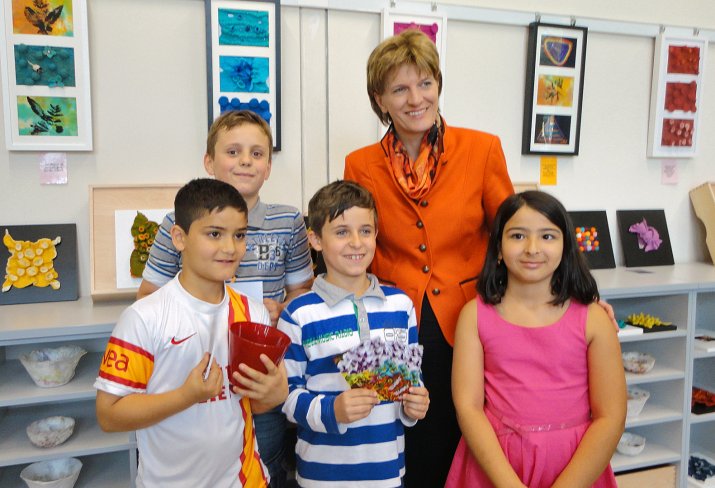 Zur Eröffnung ihrer Ausstellung „Farbenfroh“ luden am 24. Mai die Kinder der 4. Klassen der Volksschule Pradl- Leitgeb II ein. Die Ausstellung zeigt einmalige Objekte aus Filz, Metall, Papier und Holz. Bei der Vernissage konnten die Schülerinnen und Schüler auch Bürgermeisterin Mag.a Christine Oppitz-Plörer und die Obfrau des Kulturausschuss Gemeinderätin Univ.-Prof. Dr. Patrizia Moser unter den Ehrengästen begrüßen.