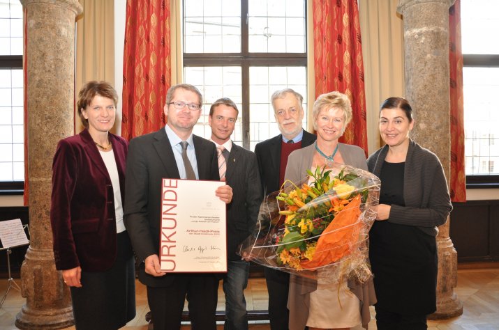 Oppitz-Plörer dankte den Mitgliedern der Jury, bestehend aus dem Rektor der Leopold-Franzens-Universität, Univ.-Prof. Dr. Karlheinz Töchterle, Magistratsdirektor Dr. Bernhard Holas und dem Leiter des Kulturamtes Horst Burmann, die sie bei der Vorberatung für die Vergabe unterstützt haben. Der Dank galt auch Frau Dr. Daniela Weiß-Schletterer vom Kulturamt für die Organisationsarbeit bezüglich Ausschreibung und Verleihung.