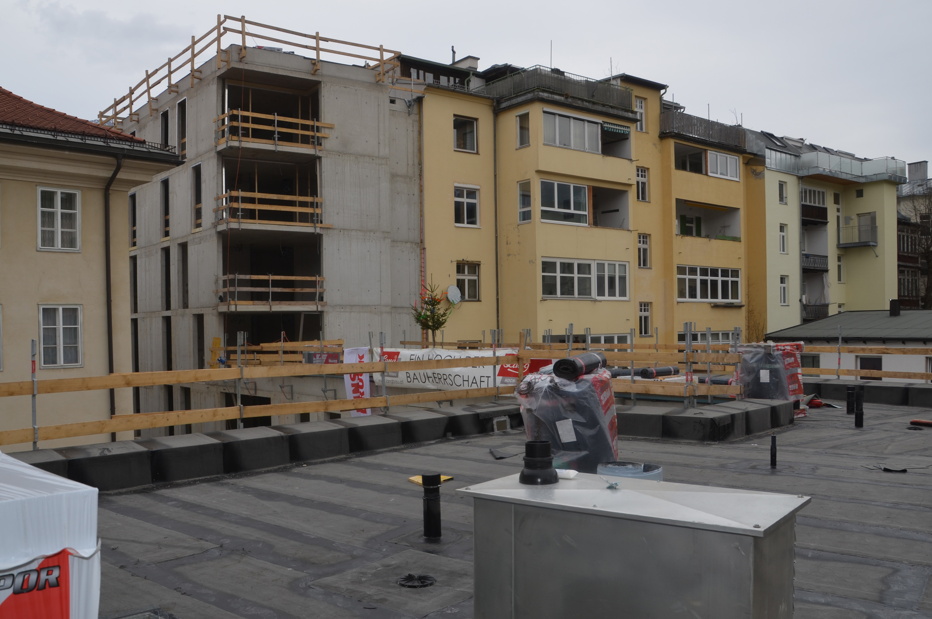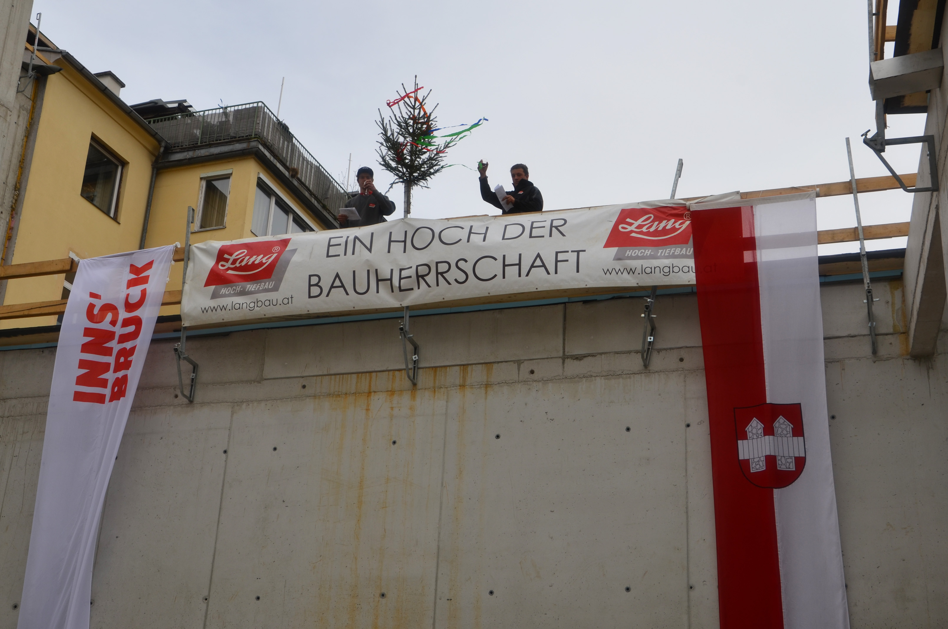 Die Bauarbeiten für das neue Stadtteilzentrum in der Wiltener Liebeneggstraße schreiten voran – davon überzeugten sich VertreterInnen der Politik sowie der Bauunternehmen kürzlich bei der Firstfeier.