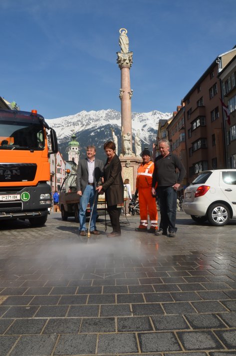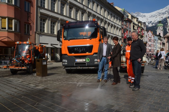 Im Winter verschmutzen Innsbrucks Straßen durch Staub, Reifenabrieb und Streusplitt. „Ab dieser Woche sind 30 Straßenreiniger mit drei Großkehrmaschinen, fünf Kleinkehrreinigern, sechs Geräteträgern, drei Waschwagen und zwei Kanalsaugwagen vier Wochen im Frühjahrsputz-Einsatz, um Innsbrucks Straßen und Gehsteige zu reinigen“, berichtet die zuständige Innsbrucker Stadträtin Dr. Marie-Luise Pokorny-Reitter.