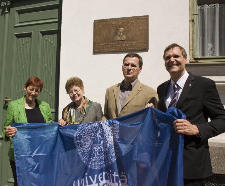 Von 1931 bis 1937 war Victor F. Hess als Professor an der Universität Innsbruck tätig. In dieser Zeit baute er auf dem Hafelekar eine Beobachtungsstation auf, in der er seine Forschungen zur Kosmischen Strahlung fortsetzte. Damals wohnte Hess gemeinsam mit seiner Frau im Haus Conradstraße 6 im Innsbrucker Saggen. An diesem Haus wurde heute, Donnerstag, im Besein von Vizerektor Wolfgang Meixner, Gemeinderätin Gerti Mayr und Astroteilchenphysiker Olaf Reimer eine Gedenktafel enthüllt.