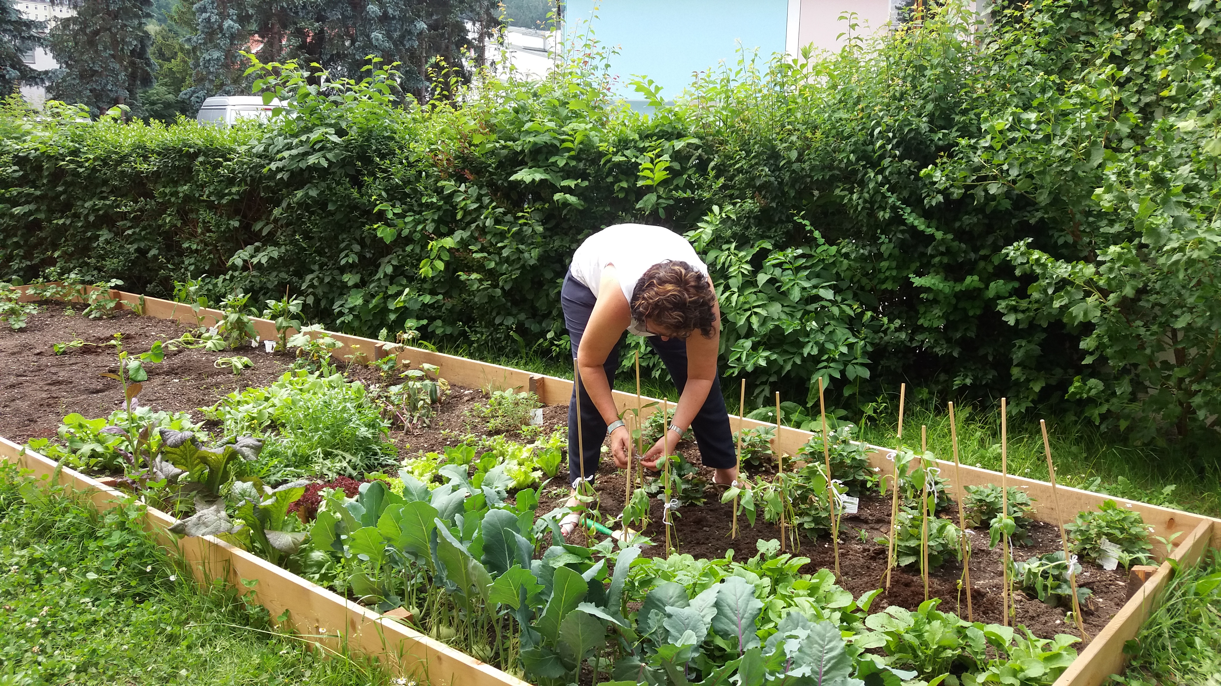 „Der Kindergarten Sieglanger bietet einen etwas anderen Garten. Er ist pädagogisch und didaktisch wertvoll aufgebaut und bringt den Kindern auch Nachhaltigkeit und Natur näher“, zeigte sich Stadtrat Ernst Pechlaner bei einem Besuch im Juni mit Mag.a Dr.in Martina Zabernig (Amtsleiterin Kinder, Jugend und Generationen) beeindruckt: „Gesunde Ernährung und die einfache Möglichkeit, Gemüse selbst anzubauen rücken so mehr ins Bewusstsein der Kinder.“