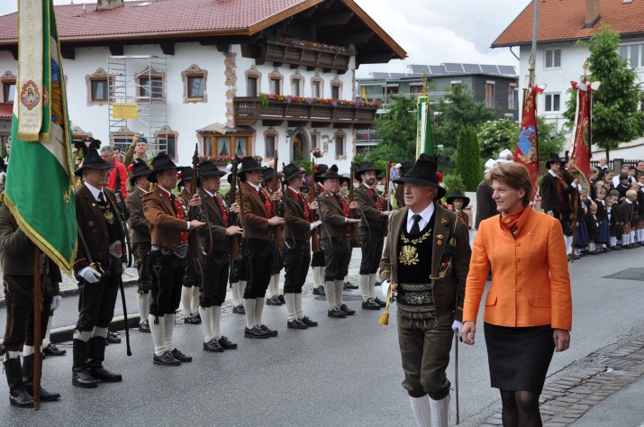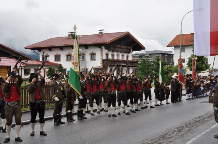 Dem Festakt, an dem mit Mag. Lucas Krackl und Herlinde Keuschnigg auch zwei VertreterInnen des Gemeinderates teilnahmen, ging der landesübliche Empfang der Ehrengäste durch die Musikkapelle und die Schützenkompanie Amras voran.