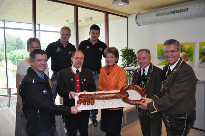 „Seitens der Stadt Innsbruck wurde viel Geld in den Bau dieses Hauses investiert. Wenn man sieht, was hier geschaffen wurde, so kann man getrost von einer sinnvollen und lohnenden Investition sprechen“, zeigte sich Bürgermeisterin Mag.a Christine Oppitz-Plörer mit der Umsetzung sehr zufrieden. „Vor allem freut es mich, dass für die Kinder mit dem Tagesheim eine hervorragende Infrastruktur geschaffen wurde. Für eine reibungslose Nutzung ist natürlich ein harmonisches Zusammenleben der einzelnen Vereine unbedingt notwendig und daher hoffe ich, dass Ihr sorgsam mit dem Haus umgeht und euch wohlfühlt“, wünschte die Bürgermeisterin den anwesenden Vereinsobleuten, denen sie feierlich den Schlüssel – in Gestalt eines schlüsselförmigen Laugengebäcks – überreichte.