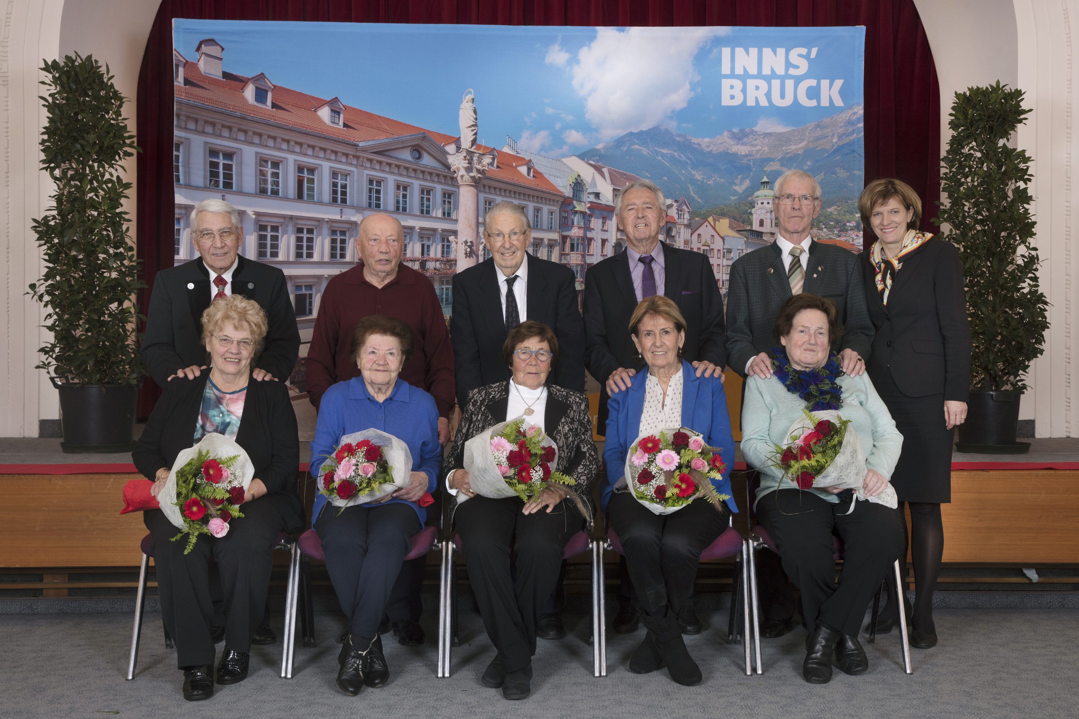 Mehrmals im Jahr würdigt die Stadt Innsbruck ganz besondere Ehepaare – und zwar jene, die bereits 50 bzw. 60 Jahre miteinander verheiratet sind und damit ihre Goldene bzw. Diamantene Hochzeit feiern. So geschehen auch vor Kurzem in den Ursulinensälen: Zehn Diamantene und 20 Goldene Paare trafen sich anlässlich ihrer Jubiläen. Und dem nicht genug: Ein Paar geht bereits seit 65 Jahren als Ehepaar gemeinsam durchs Leben und feierte sein Eisernes Jubiläum.
