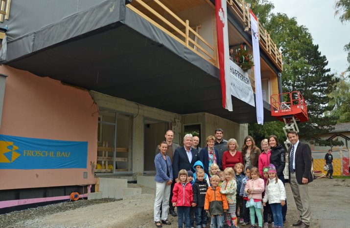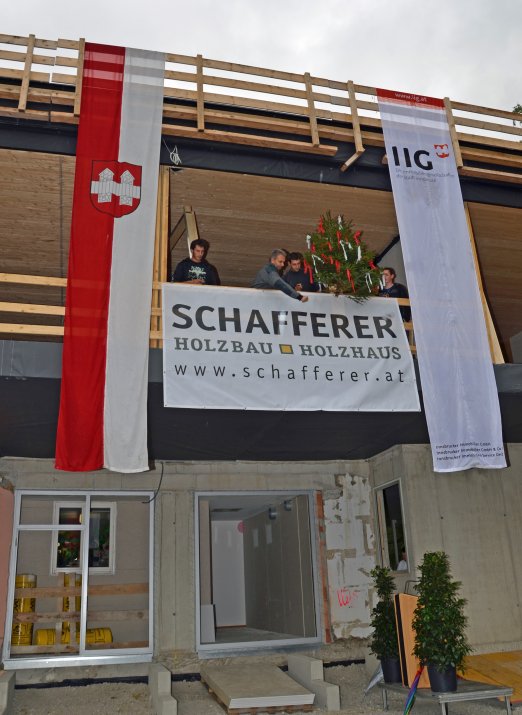 Die Stadt Innsbruck baut insbesondere im Bereich der städtischen Kindergärten und Schülerhorte das Angebot laufend familienfreundlich aus. Der Kindergarten Innerkoflerstraße ist einer der 27 städtischen Kindergärten. Um auch hier den stetig steigenden Bedarf an Betreuungsplätzen abdecken zu können, wird die bestehende Betreuungsstätte vergrößert. Der Kindergarten wird um zwei Kindergartengruppen – von vier auf sechs Gruppen – erweitert. Im Frühsommer erfolgte der Baustart, am 26. September wurde nun, nachdem der Rohbau fertiggestellt wurde, die Firstfeier begangen.
