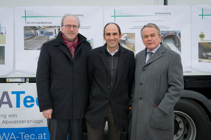 Dabei wird in die rund 11 Kilometer langen Altrohre (Rohrdurchmesser: 50 cm) ein flexibler Gewebeschlauch eingezogen. Dieser härtet im Altrohr zu einem selbsttragenden Rohr aus – das daher direkt an der Baustelle produziert wird. Schneider: „Wir müssen nicht mehr die gesamte Straße aufgraben, es genügen wenige Montagegruben zur Einführung des Schlauches. Das spart Bauzeit und Kosten.“