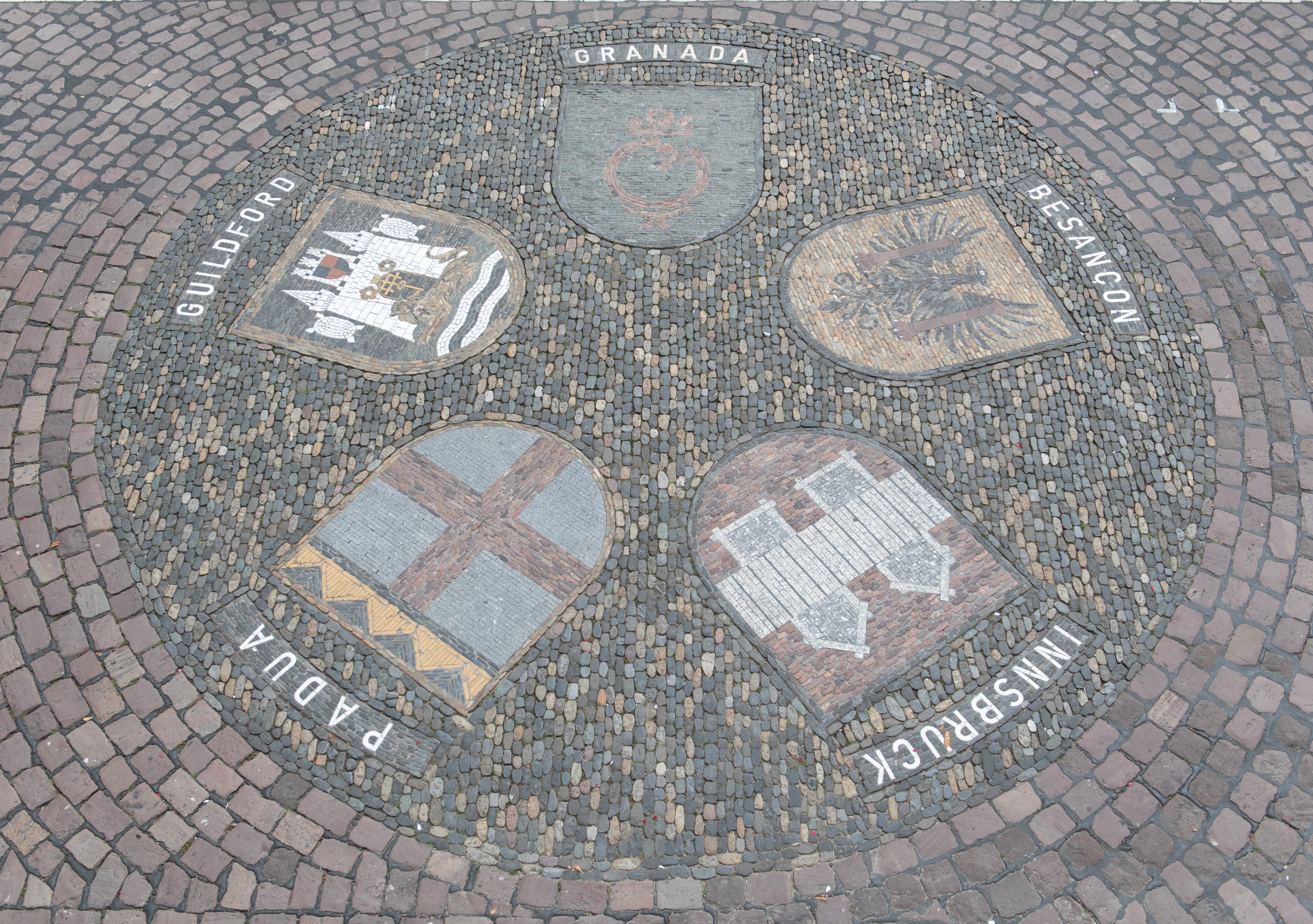 Die Stadt in Baden-Württemberg ist Innsbrucks älteste Partnerschaft und reicht bis ins Jahr 1963. Die gemeinsame Geschichte des Hauses Habsburg ist im gesamten Stadtbild Freiburgs zu erkennen. Am dortigen Schlossberg thront das „Innsbruck Kreuz“, ein Geschenk der Tiroler Landeshauptstadt. Innsbruck ist aber auch im Stadtteil St. Georgen zu entdecken – eine nach der Stadt benannte Straße weist auf die Partnerschaft hin. Vor dem Rathaus wird Innsbruck noch einmal sichtbar – dort ist ein steinernes Innsbruck-Wappen (siehe Foto) zu entdecken. Auch auf der gesellschaftlichen Ebene tauschen sich die befreundeten Städte aus: Alle zwei Jahre findet ein „Partnerschaftsmarkt“ auf dem Rathausplatz statt. Dabei können sich die zwölf Partnerstädte Freiburgs touristisch und kulturell präsentieren.