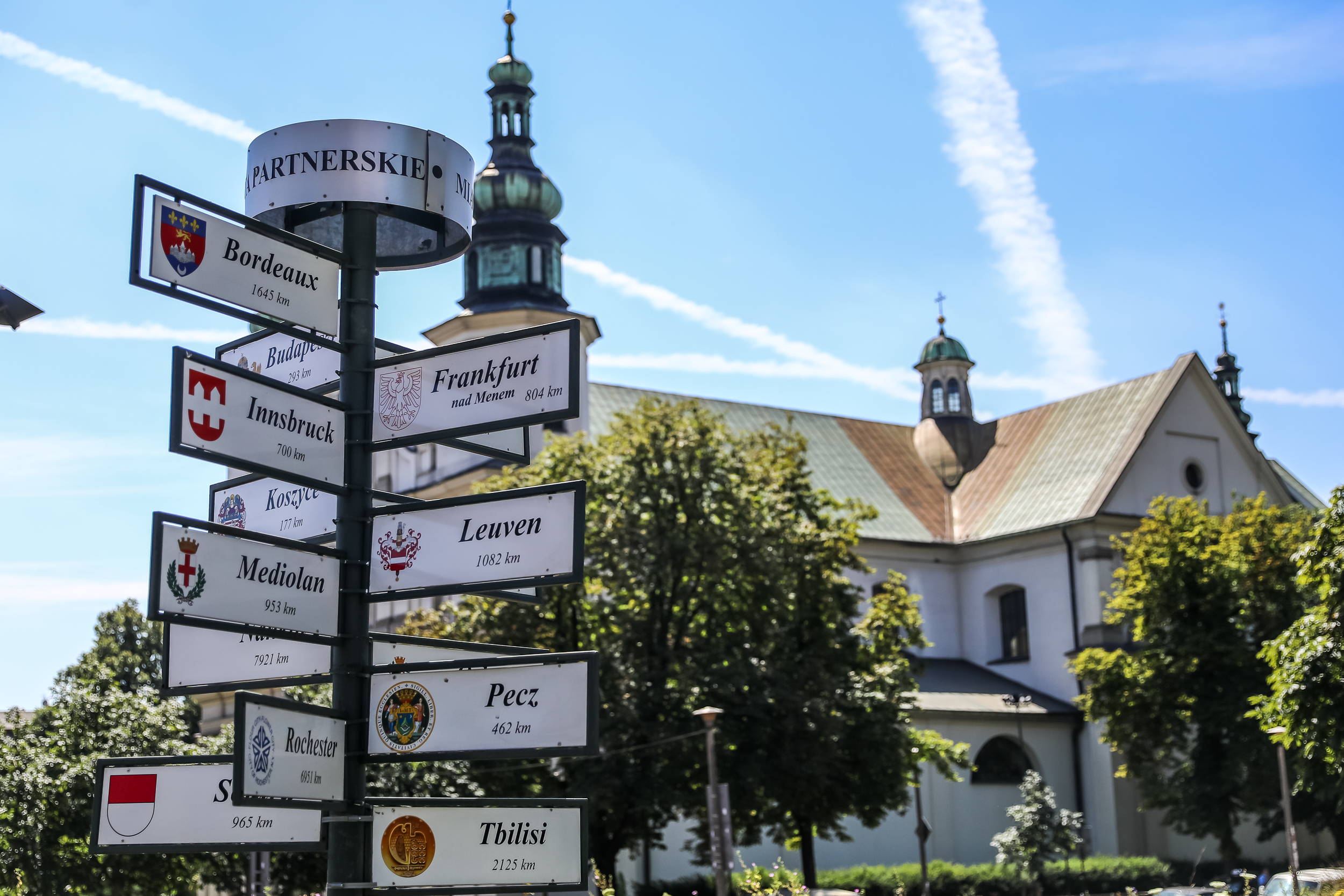 Innsbruck und Krakau haben vor allem eines gemeinsam: Beide sind traditionelle Universitätsstädte. Außerdem haben sie mit Tbilisi eine gemeinsame Partnerstadt. Die 1998 geschlossene Partnerschaft zeigt sich aber in noch mehr Bereichen: Regelmäßig lädt Krakau seine Partnerstädte zu Fach-Konferenzen in die polnische Stadt. Themen waren beispielsweise Umwelt und Ökologie sowie SeniorInnenpolitik. Aktuell lädt Krakau auf der Website bit.ly/krakau_projekt ein, seine Partnerstädte „durch ein Schlüsselloch“ besser kennenzulernen. Innsbruck ist den KrakauerInnen auch vor Ort ein Begriff – als Eiche und auch in Form eines Fahrrads. Letzteres war im Vorjahr ein Geschenk der Stadt Innsbruck. Das dekorative Rad mit Blumenständerfunktion steht im Ogród Sielski-Park. Anlässlich des 100-Jahr-Jubiläums der Unabhängigkeit Polens wurden im Erholungsgebiet Przylasek Rusiecki 100 Eichen gepflanzt – benannt nach den Partnerstädten. Vor der WawelBurg zeigt ein Wegweiser (siehe Foto) in die Himmelsrichtungen der Partnerstädte.