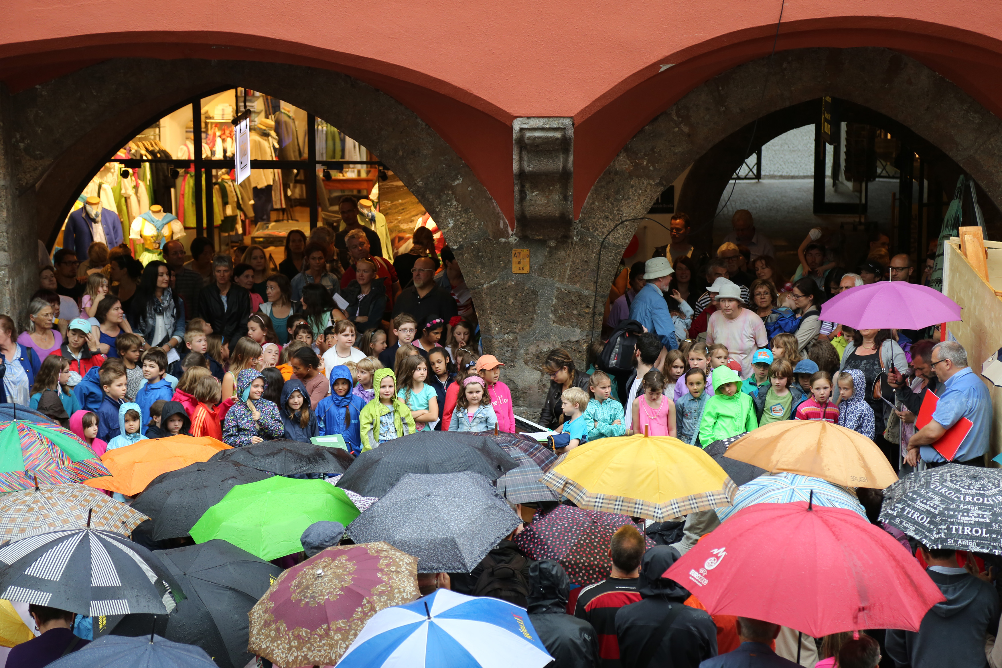 „Innsbruck singt“ startete um 16:00 Uhr vor dem Stadtturm. Dort fand sich die Station „Kinder singen für Jung und Alt und Alt und Jung singen mit“, die von Manfred Mingler (Musikschule Innsbruck) betreut wurde.