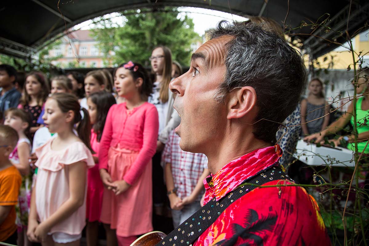 Den Auftakt machen am Samstag, 01. Juli um 15:00 Uhr im Treibhaus-Garten nach der Eröffnung mit Bürgermeisterin Christine Oppitz-Plörer der Kinderchor und die Singklassen der Musikschule Innsbruck (Leitung: Manfred Mingler). Gemeinsam mit dem Tiroler Duo RatzFatz präsentieren sie den Programmpunkt „Kinderlieder zum Mitsingen“.