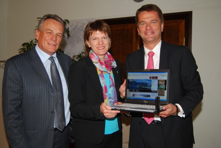 (RMS) Innsbruck ist seit 20. Oktober anderen österreichischen Städten auf der „digitalen Autobahn“ eine Nasenlänge voraus: Bürgermeisterin Mag.a Christine Oppitz-Plörer nahm gemeinsam mit dem IKB-Vorstandsvorsitzenden DI Harald Schneider das Angebot des österreichischen Mobilfunkanbieters T-Mobile wahr, die neue 4G-Verbindung im Rathaus mit einem Datenstick zu testen.