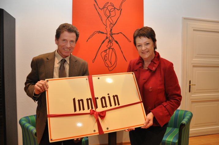 Auch die Repräsentanten von Institutionen, wie kürzlich der Rektor der Leopold-Franzens-Universität, Univ.-Prof. Dr. Karlheinz Töchterle, denen Stadträtin Dr. Maria-Luise Pokorny-Reitter eine Straßentafel als Geschenk überreicht, sind sehr erfreut über diese nostalgische Überraschung. Rektor Töchterle betonte am 8. November beim Besuch von Stadträtin Pokorny-Reitter mit der mit einer roten Masche verzierten „Innrain“-Tafel, dass diese einen Ehrenplatz im Universitätsgebäude bekommen werde.