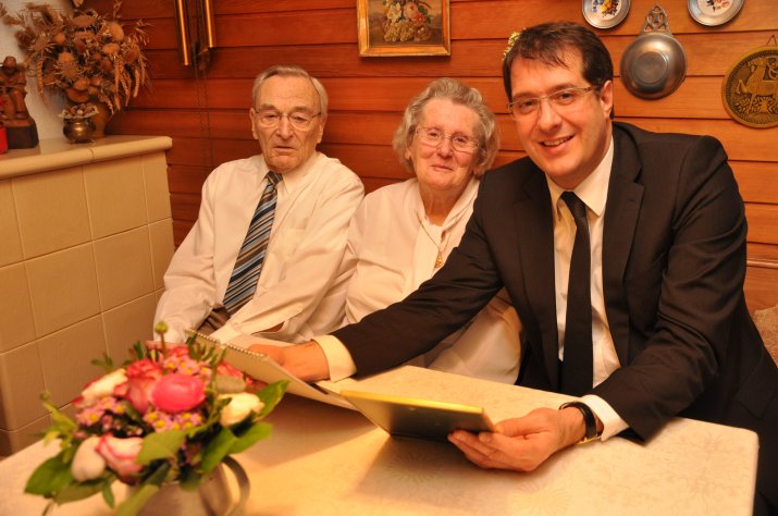 Das Ehepaar Schweizer feiert heuer einen ganz besonderen Hochzeitstag: Das Steinerne Ehejubiläum. Anlässlich des freudigen Ereignisses besuchte Vizebürgermeister Franz X. Gruber das Jubelpaar am 19. Jänner zuhause und überbrachte die Glückwünsche der Stadt Innsbruck, einen Blumenstrauß und eine Flasche Wein.