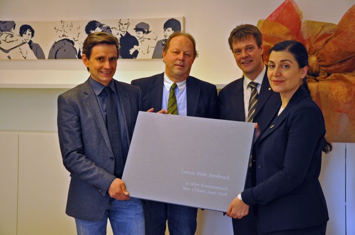Anlässlich des zehnjährigen Jubiläums des Kunstaustausches der Stadt Innsbruck und der University of New Orleans, wurden 17 Tiroler KünstlerInnen, die in den vergangenen zehn Jahren in New Orleans ausgestellt haben, eingeladen, eine serigraphische Arbeit zu realisieren. Gesammelt in einer Mappe, repräsentieren die neu produzierten „Blätter aus Innsbruck“ auf symbolische Weise diese langjährige Städtefreundschaft.