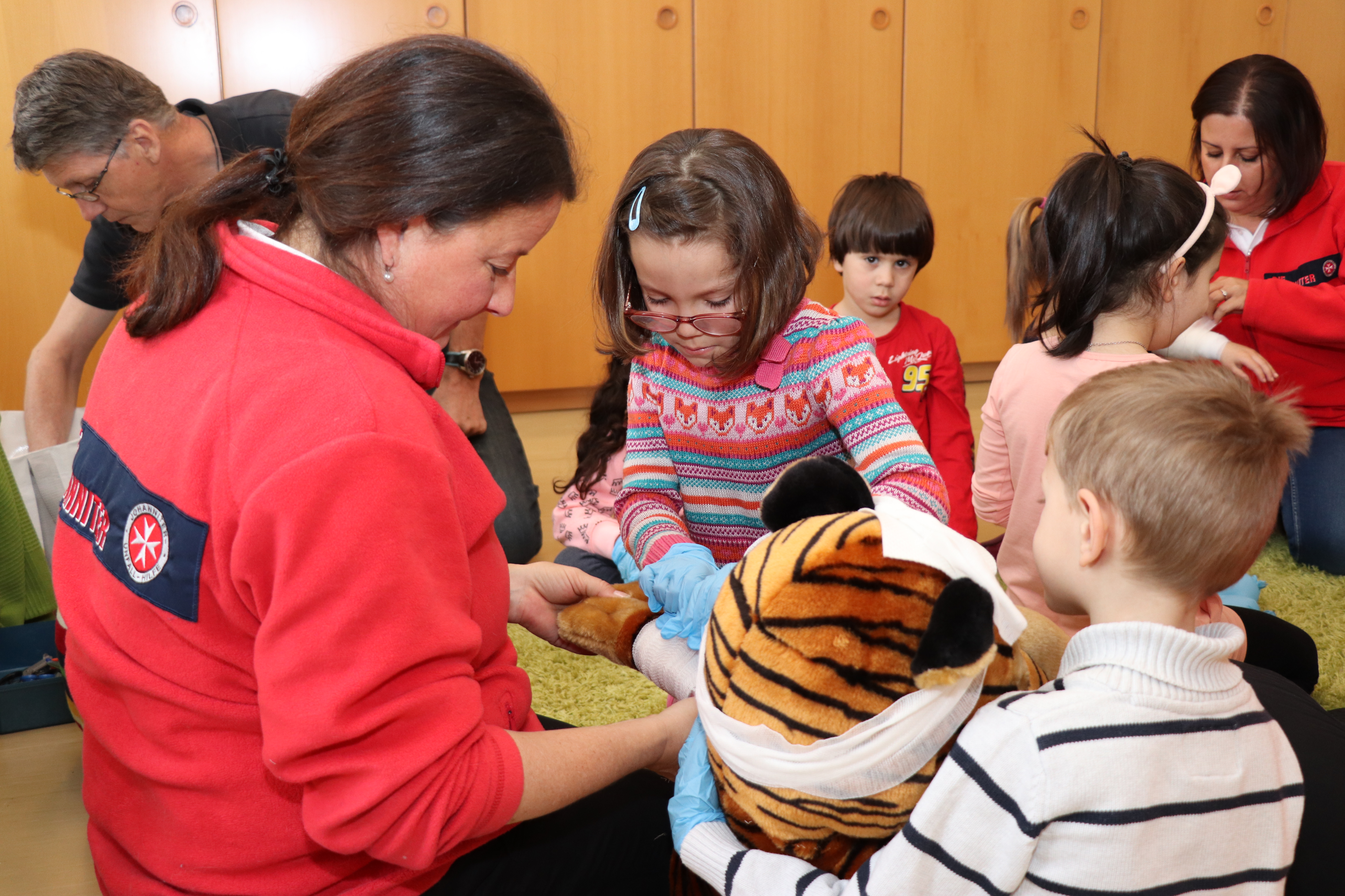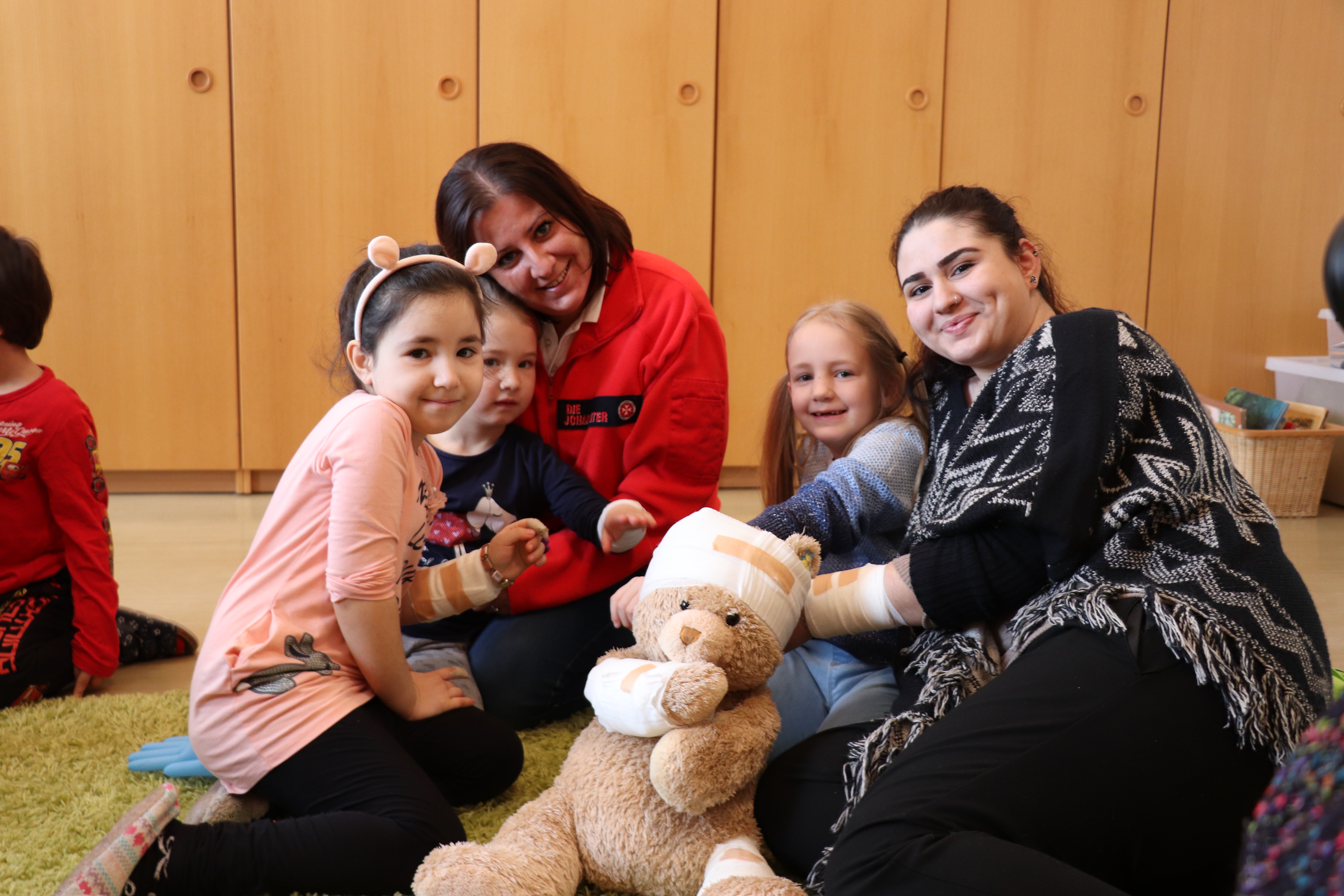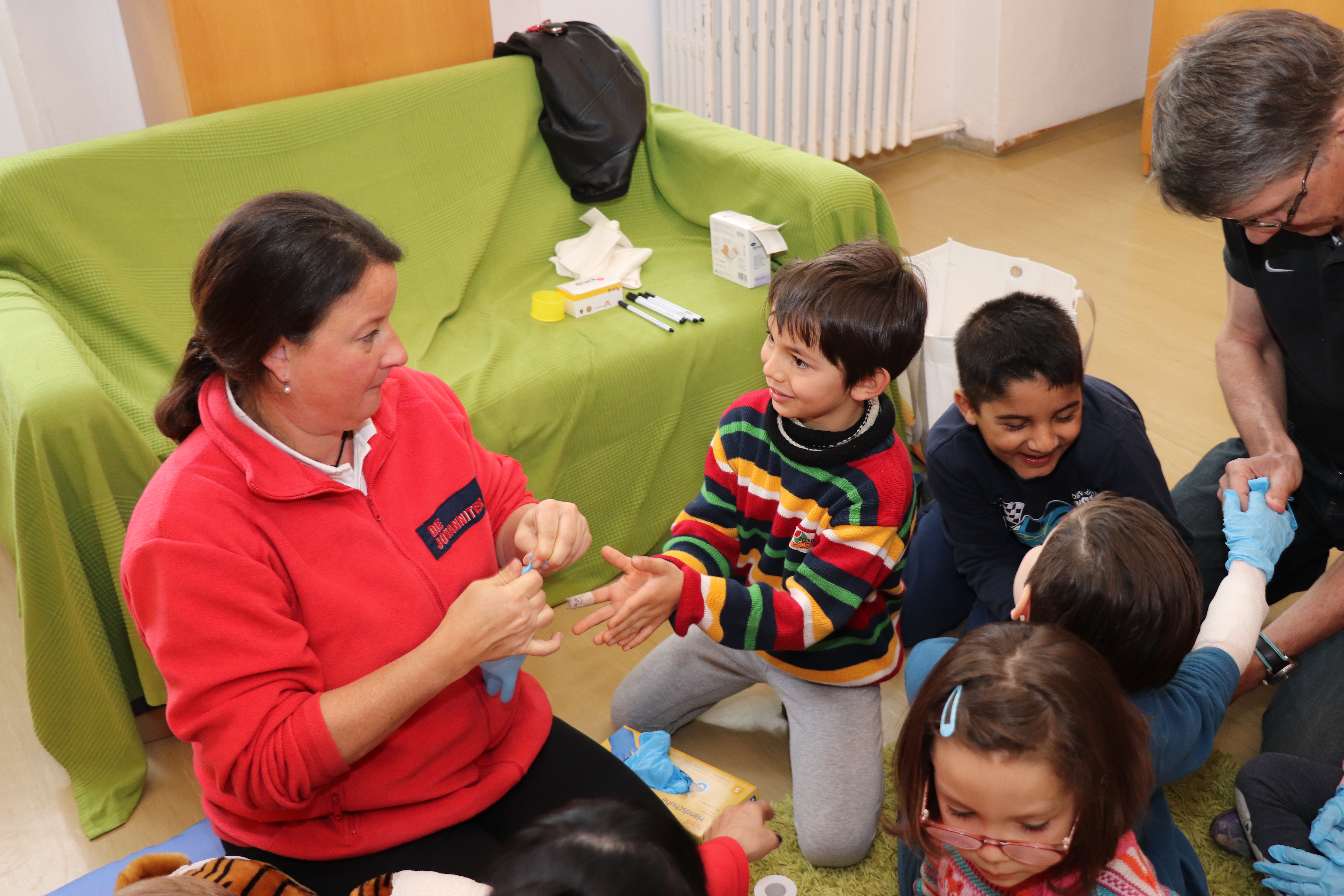 In den 40 Erste-Hilfe-Workshops lernen die Kindergartenkinder im Alter von drei bis sechs Jahren spielerisch die Grundbegriffe der Erste Hilfe.