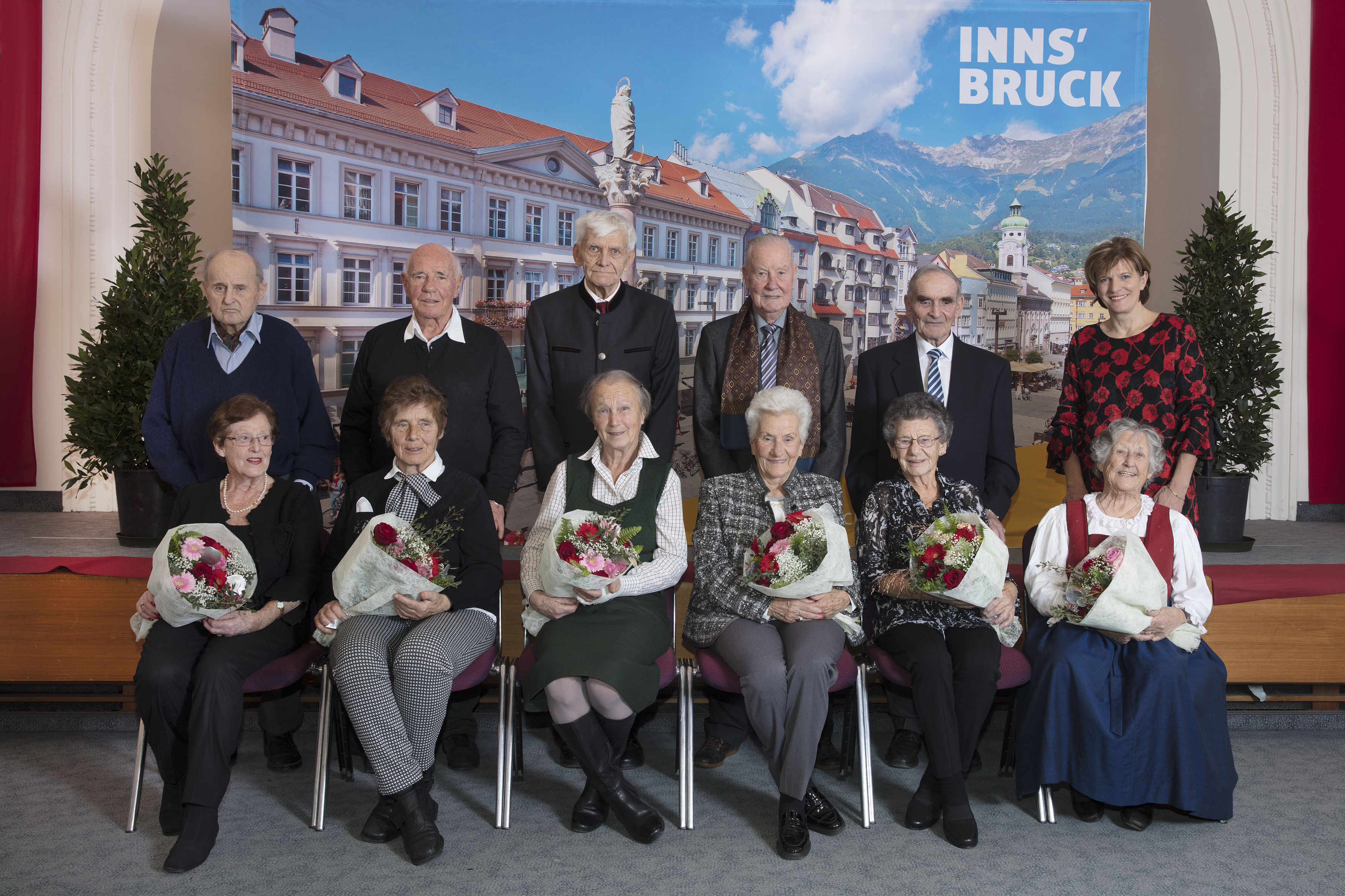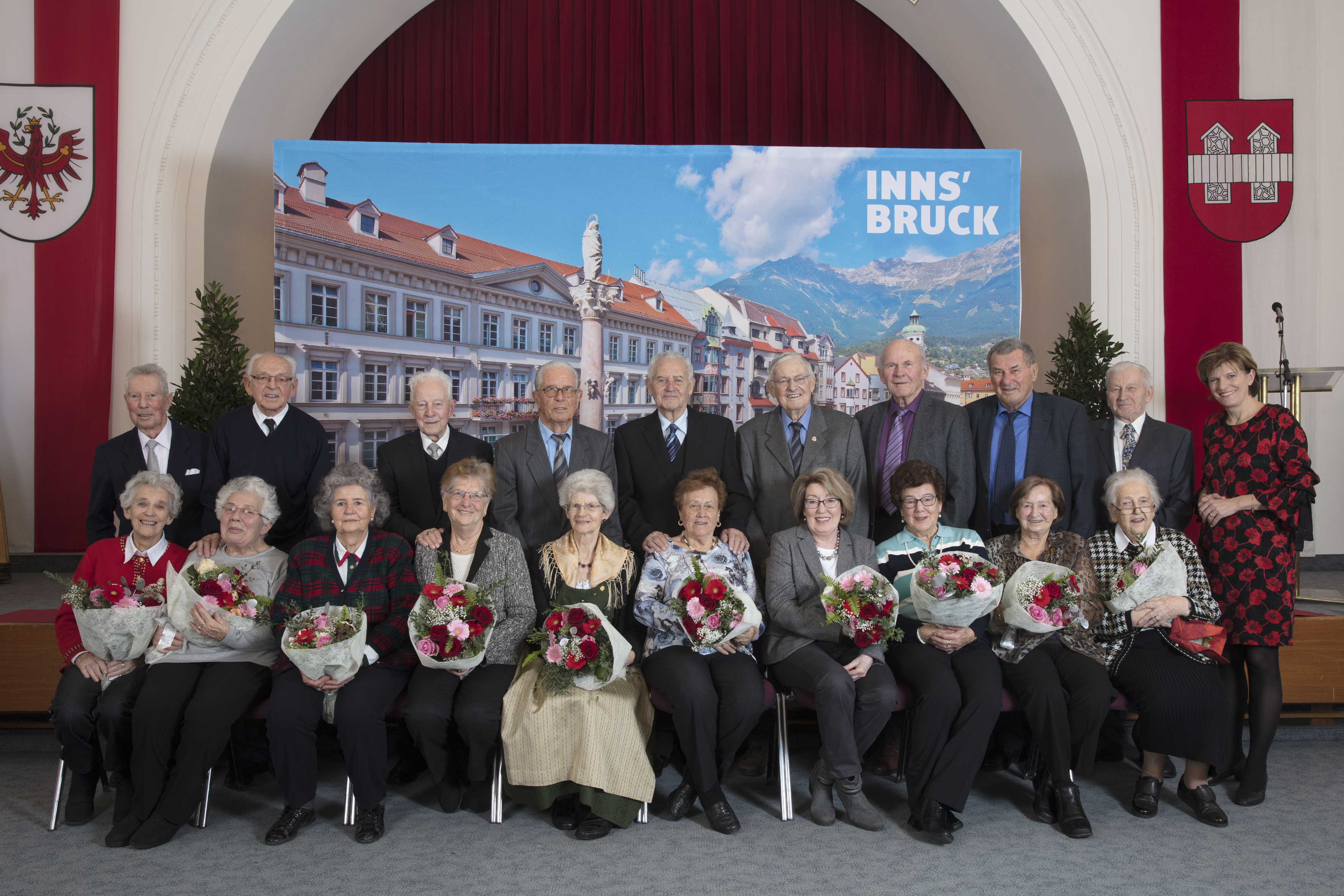 Lange verheiratet zu sein, ist in der Tiroler Landeshauptstadt nicht unüblich: In Innsbruck feierten bzw. feiern noch 2017 insgesamt 238 Goldene und 85 Diamantene Hochzeitspaare ihre Jubiläen. 26 Paare ihre Eiserne Hochzeit (65 Jahre Ehe) und 14 ihre Steinerne Hochzeit (67,5 Jahre). Vier Paare durften ihre Gnadenhochzeit nach 70 Jahren Ehe feierlich begehen. (DH)