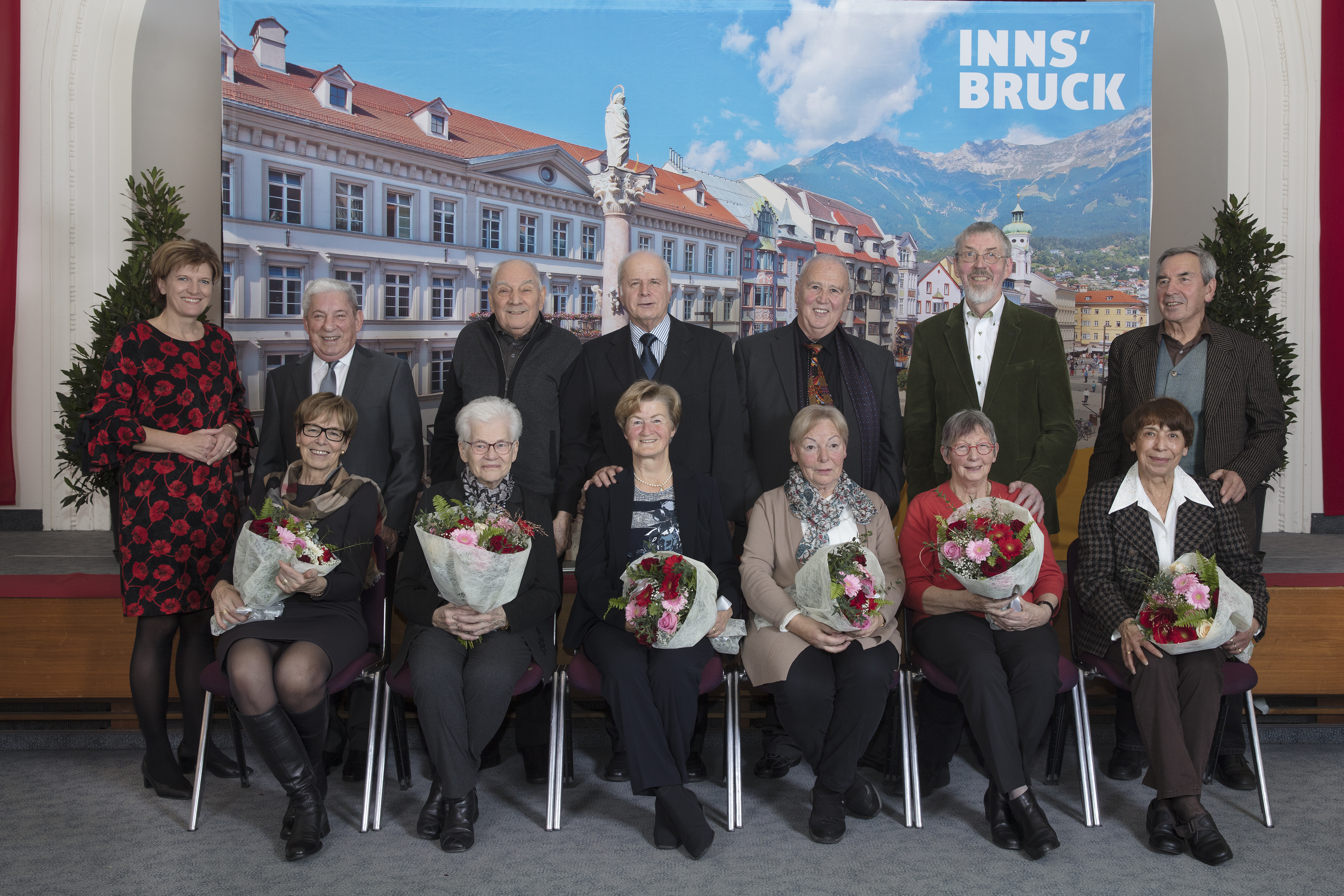 Während draußen der Schnee die Landschaft weiß färbte, strahlten in den Ursulinensälen 57 Ehepaare um die Wette: Anlässlich ihrer Goldenen bzw. Diamantenen Hochzeitsjubiläen folgten sie der Einladung der Stadt Innsbruck zur letzten Jubiläumsfeier des Jahres.