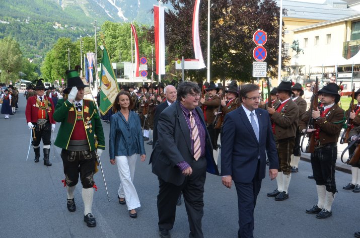 Der Verleihung im Riesensaal der kaiserlichen Hofburg ging der landesübliche Empfang voraus, zu dem die Ehrenkompanie Amras aufmarschiert war. Unter den zahlreichen Ehrengästen befanden sich neben Mitgliedern der Tiroler Landesregierung, Stadtrat Mag. Gerhard Fritz, StR Ernst Pechlaner und VertreterInnen des Gemeinderates auch RepräsentantInnen des diplomatischen Korps, zahlreiche Delegierte des Europarates, VertreterInnen des Europäischen Parlamentes, der Behörden und der Universität sowie EhrenzeichenträgerInnen.