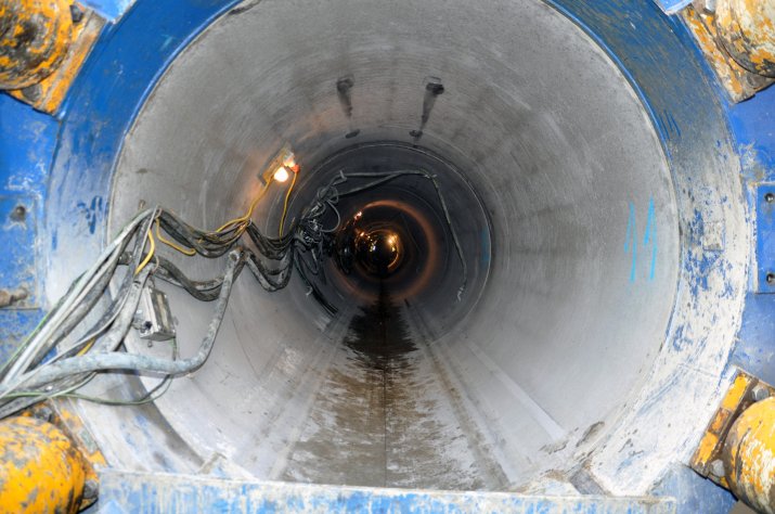 Etwa acht Meter unter der Oberfläche kommt dabei innovativste Technik zum Einsatz: Eine Vortriebsmaschine, auch Maulwurf genannt, arbeitet sich durch das Erdreich und gräbt dabei einen Schacht, in den die Kanalrohre mit einem Durchmesser von 2,2 Metern nachgeschoben werden. Dank dieser Methode sind kaum oberirdische Aufgrabungen notwendig und die Bauzeit halbiert sich. Gut 3.500 LKW-Fahrten für Materialtransporte können damit im Stadtgebiet eingespart werden, was auch die Lärm- und Feinstaubbelastung deutlich reduziert.
