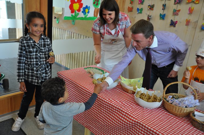 Interessierte hatten die Möglichkeit sich über das Mittagstisch-Angebot der Stadt und die Betreuung in den einzelnen Einrichtungen zu informieren. „Es freut mich besonders, dass wir im Sinne einer familienfreundlichen Stadt nun auch in diesem Bereich eine hundertprozentige Abdeckung haben“, so Kinder- und Jugendreferent Vizebürgermeister Christoph Kaufmann im Rahmen eines Fototermins im Kindergarten „Kinder am Tivoli“: