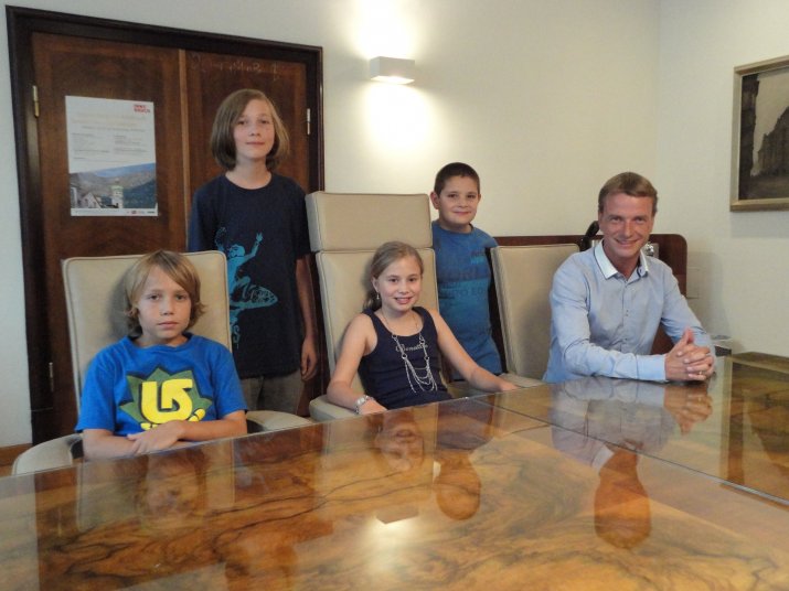 Selbstbewusst und fröhlich stattete die Stadtregierung der Kinderstadt einen Besuch bei Amtskollegen Vizebürgermeister Christoph Kaufmann ab.