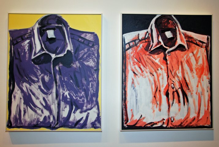 Hubert Flattinger malt „Porträts“ von Kleidungsstücken. „Vielleicht um herauszufinden, ob sich etwas vom Stoff, von der Haut, von der Seelen jener, die diese Sachen für gewöhnlich hautnah an ihrem Körper tragen, auf das Gewebe überträgt“, so der Künstler. Schuhe – heißt es ja – nehmen das Gesicht ihrer Besitzer an, erzählen Geschichten. Solcherlei Geschichten will auch Hubert Flattinger mit seinen Bildern nachspüren, die er nach den Besitzern der jeweiligen Kleidungsstücke benennt. Es sind Bilder-Geschichten von langen Zugfahrten mit schneevereisten Fenstern, Faltentälern, dunklen Mantelschluchten, Bettgeflüstereien, Cowboyliedern und einsamen Fernsehabenden, verschütteten Aschenbechern und völlig überspannten Hosenträgern. Seine Bilder spiegeln auch Lieder wider.
