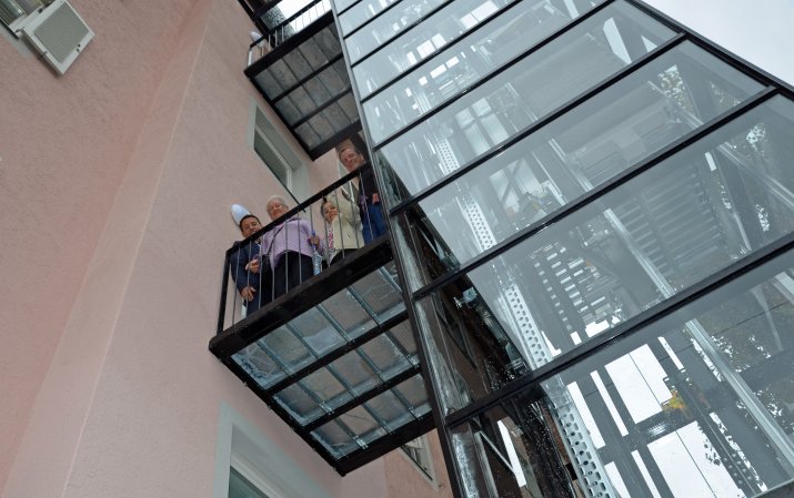 Einfacher, komfortabler und schneller gelangen die MieterInnen der Langstraße 6/10/12/18/22 ab sofort in ihre Wohnungen. Ermöglicht wird dies durch straßenseitig situierte Aufzugsanbauten, die auf Wunsch der MieterInnen von der Innsbrucker Immobiliengesellschaft (IIG) angebracht wurden. Gemeinsam mit IIG-Geschäftsführer Dr. Franz Danler und IIG-Bauleiter Martin Kiechl überzeugte sich Wohnungsreferent Vizebürgermeister Christoph Kaufmann vom Endergebnis.