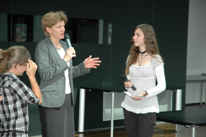 Die 44 Kinder, die an der Kompetenzwerkstatt teilgenommen hatten, erhielten Kompetzen-Zertifikate. Überreicht wurden die Auszeichnungen durch Bürgermeisterin Mag.a Christine Oppitz-Plörer. „Sich seiner Stärken bewusst zu sein hilft, Selbstbewusstsein und Selbstvertrauen zu gewinnen, und damit gerüstet für die Berufswahl und das spätere Leben zu sein“, zeigte sich die Bürgermeisterin überzeugt. An der Zertifikatsverteilung nahmen auch die Projektpartner Univ.-Prof. Dr. Bjorn Ludwig (Zukunftszentrum Tirol), Univ.-Prof. Dr. Werner Mayer (Pädagogische Hochschule Tirol), KR Martin Schaffenrath (AK-Tirol) sowie Notburga Troger (Integrationsstelle Stadt Innsbruck) teil. Außerdem waren Bezirksschulinspektor Ferdinand Treml, Direktorin OSR Helene Rudig sowie die KlassenlehrerInnen und „Coaches“ gekommen. Durch die Veranstaltung führten die beiden Schülerinnen Melanie und Denise, die mit ihren Moderations-Stärken beeindruckten.