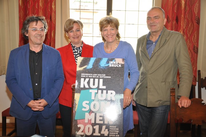 und Dr. Karl Gostner (Tourismusverbandsobmann Innsbruck und seine Feriendörfer) in Anwesenheit vieler OrganisatorInnen und VeranstalterInnen präsentiert. Durch die Programmpräsentation führte Mag.a Birgit Neu (Abteilungsleiterin Magistratsabteilung V) Robert Neuner (IAI Veranstaltungs GmbH) erläuterte die aktuelle Werbelinie des Kultursommers.