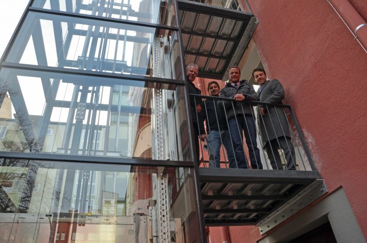 Um den Zugang zu den Wohnungen einfacher und komfortabler zu gestalten, wurden auf Wunsch der MieterInnen und nach einer Erhebung der Innsbrucker Immobilien Gesellschaft (IIG) Aufzugsanlagen im Sennblock errichtet. Wohnungsreferent Vizebürgermeister Christoph Kaufmann überzeugte sich am 23. Jänner gemeinsam mit Amtsvorstand Ing. Ronald Depaoli (Wohnungsservice) und IIG-Geschäftsführer Dr. Franz Danler vom fertiggestellten Aufzugsanbau. Auch zahlreiche MieterInnen sowie Bauleiter Martin Kiechl (IIG) und Sandra Krösbacher (Hausverwaltung Saggen) nahmen die Anbauten in Augenschein.